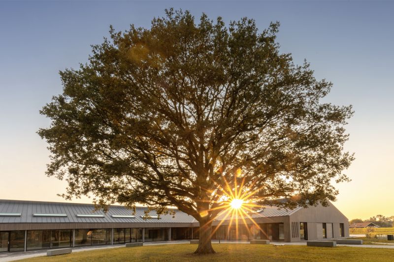 Voor het gebouw ligt een grote parkeerplaats. Aan de rechterzijde bevinden zich laadpalen voor elektrische auto’s. Bezoekers voor asbestemming kunnen ook het beste aan de rechterkant van het gebouw parkeren. De parkeerplaatsen voor minder-validen bevinden zich voor de hoofdingang.