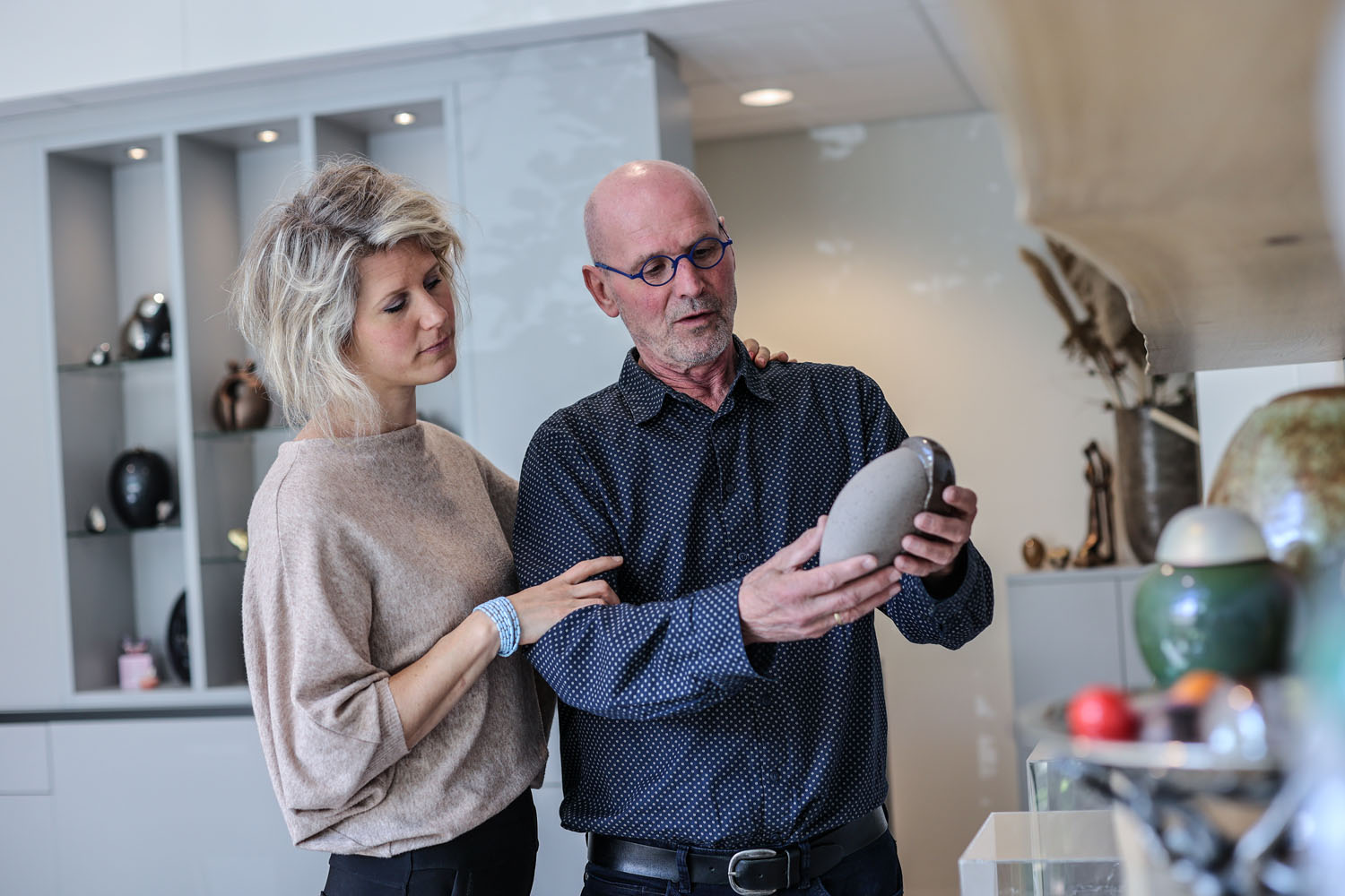 Het kiezen van een bestemming voor de as is een persoonlijke beslissing. Daarom zijn er uitgebreide mogelijkheden om een tastbare herinnering te creëren, zoals een glasreliek of persoonlijk sieraad met bijvoorbeeld een vingerafdruk. Verder kun je kiezen voor een sierurn; deze zijn er in verschillende afmetingen en geschikt voor binnen en buiten. We adviseren je graag bij het maken van een passende keuze.