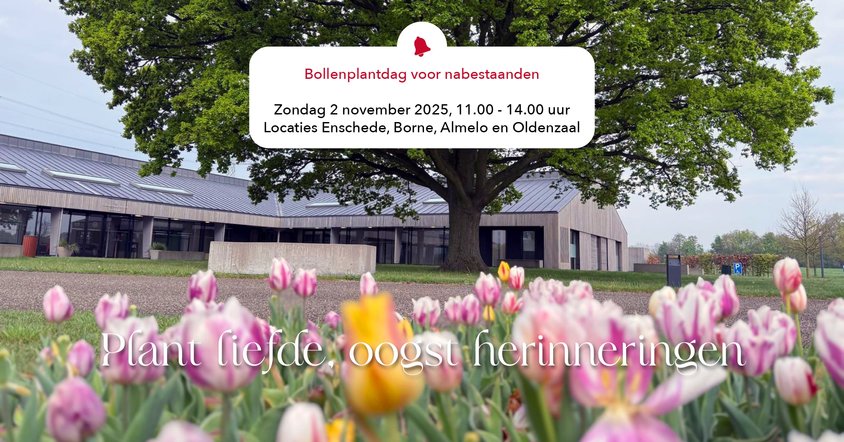 Onze jaarlijkse Bollenplantdag is dit jaar op zondag 2 november van 11.00 - 14.00 uur op de locaties Enschede, Borne, Almelo en Oldenzaal. De bollen liggen klaar. Voor thee en koffie wordt gezorgd. Jij komt toch ook?